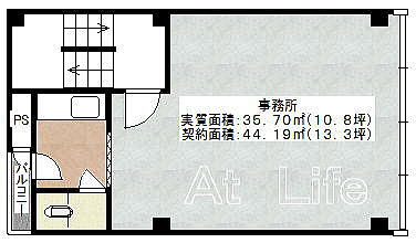 ■ワンフロア1テナント!契約面積44,19u(13,3坪)/実質面積35,70u(10,8坪
