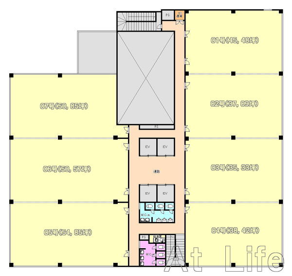 ※パーティションの変更により各フロアの坪数・号室が異なる事もあります。